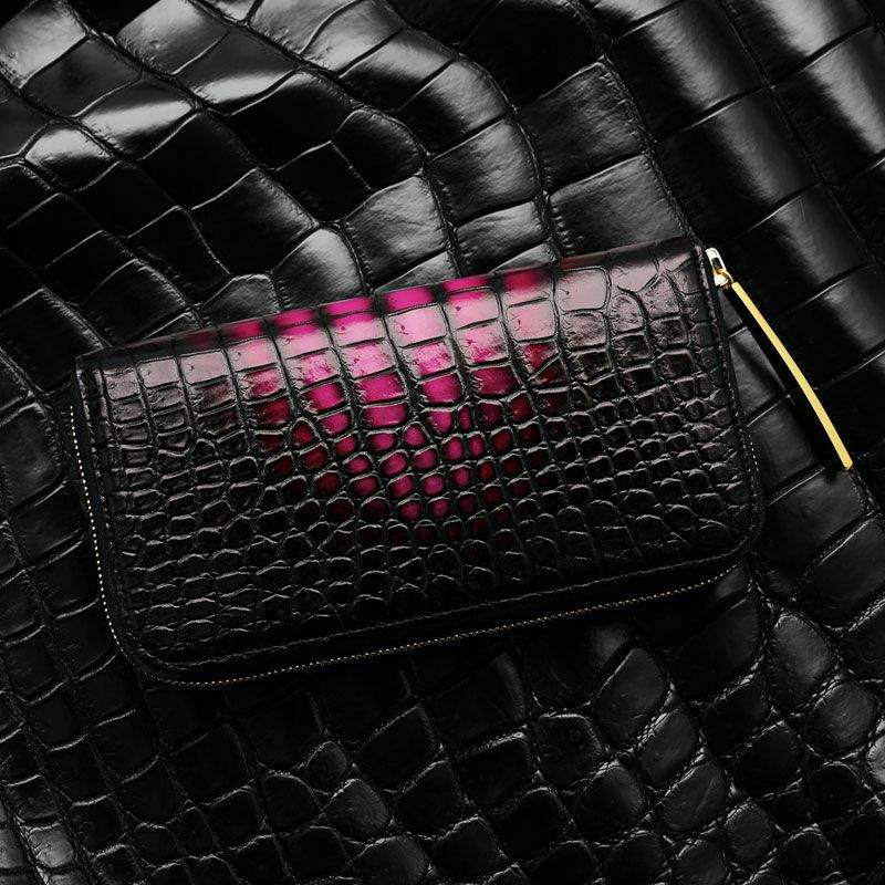 こちらの作品は、史上最高傑作の透明感を叶えた「彩飾クロコダイル」の一枚革財布。