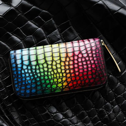 “彩飾グラデーション”クロコダイル一枚革財布『夢鯨』